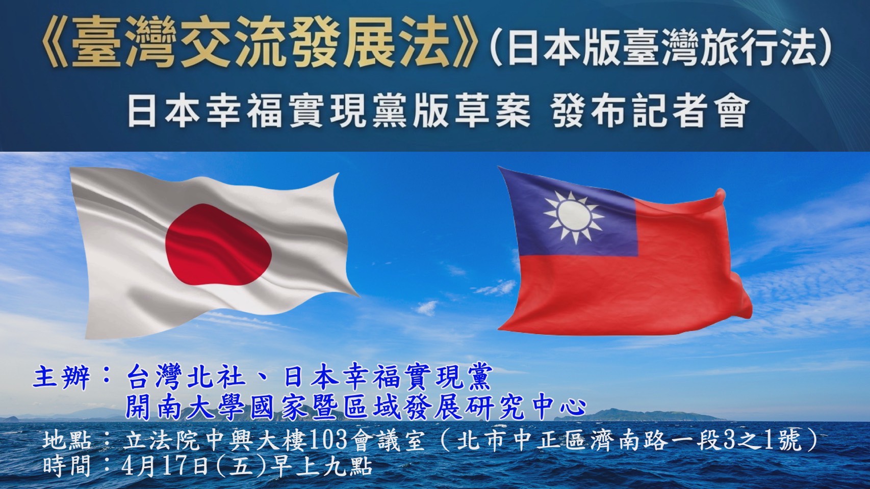 20260417《臺灣交流發展法 日本幸福實現版草案》(日本版臺灣旅行法) 發布記者會