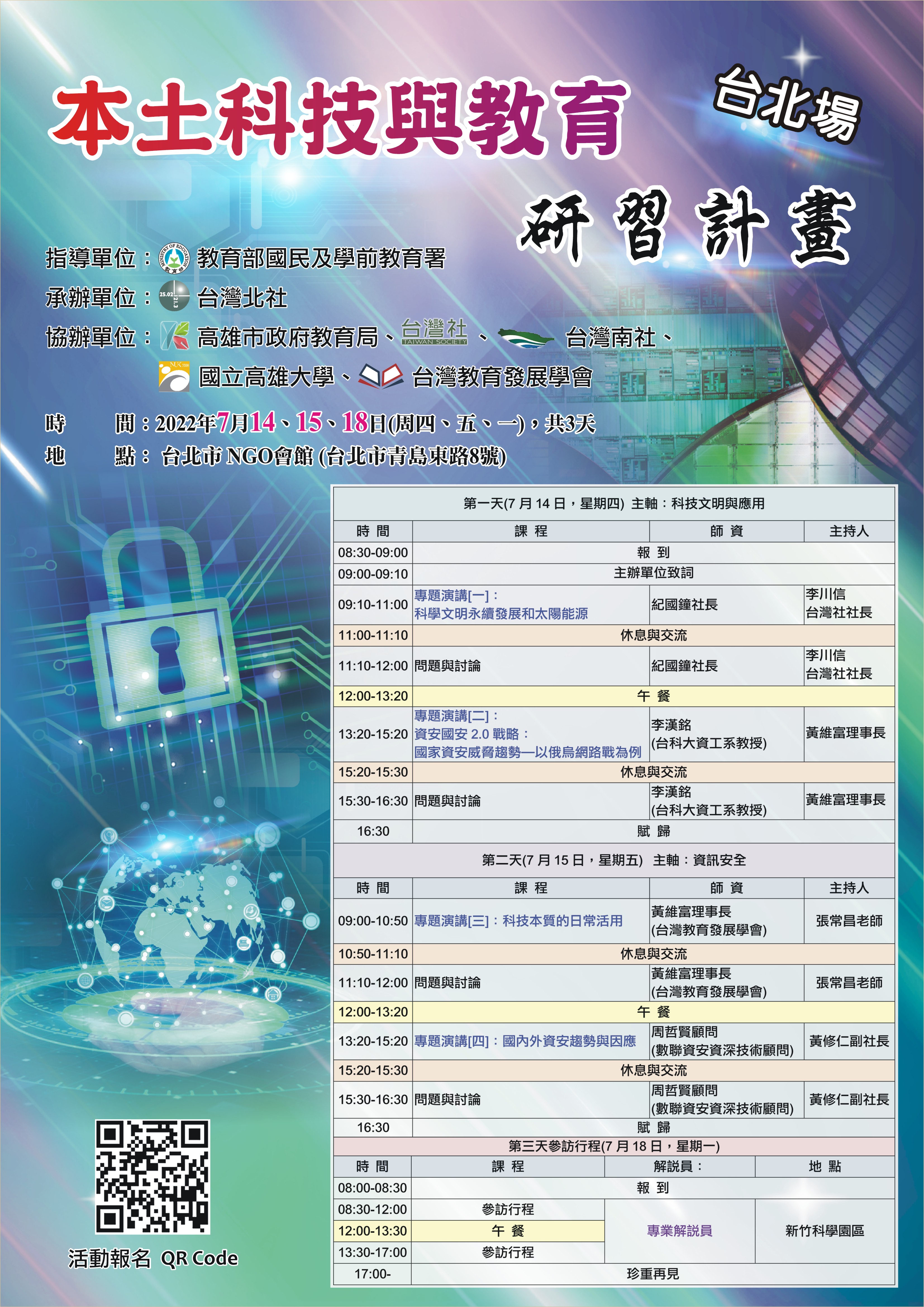 20220704台灣北社「 2022年本土科技與教育教師研習營(暑假班)」開始報名