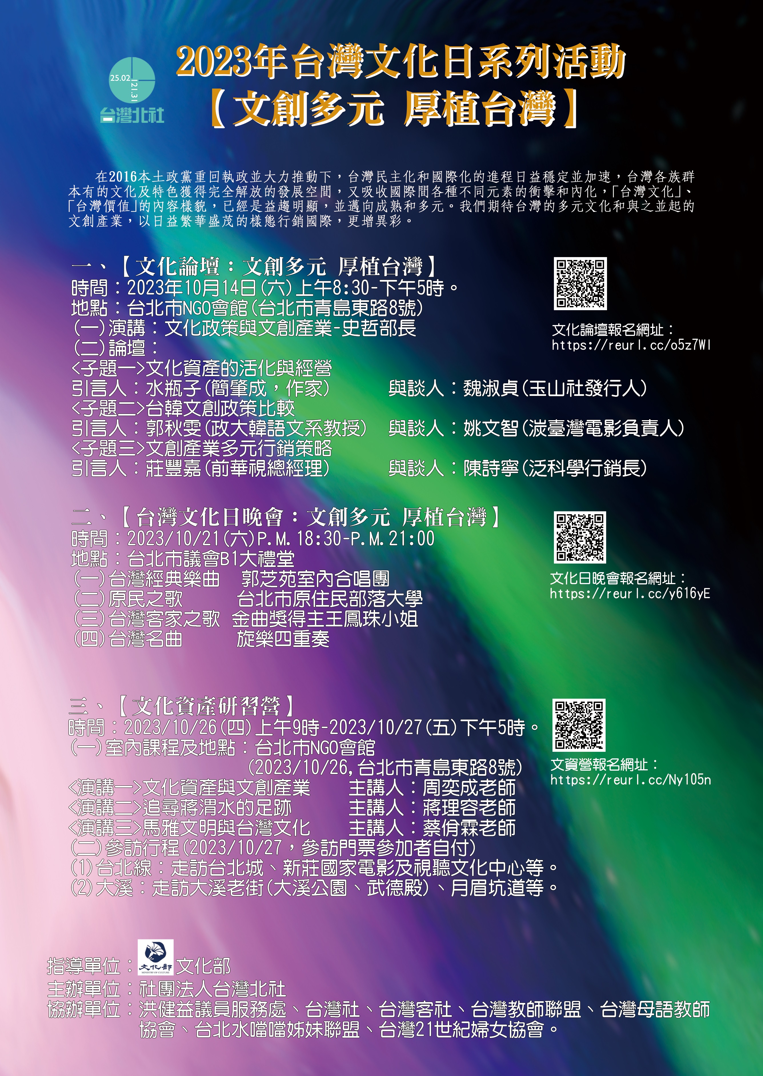 敬邀參加: 台灣北社2023台灣文化日系列活動(三)文化資產研習營