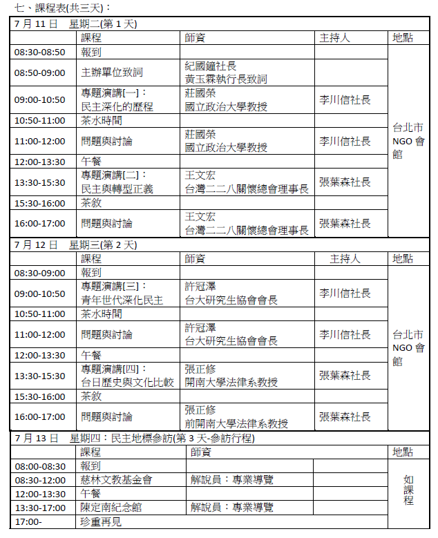 四、時間/地點:7月11日(二)~ 7月13日(四)。