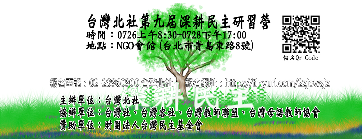 台灣北社2022年第九屆深耕民主研習營即日起開始報名