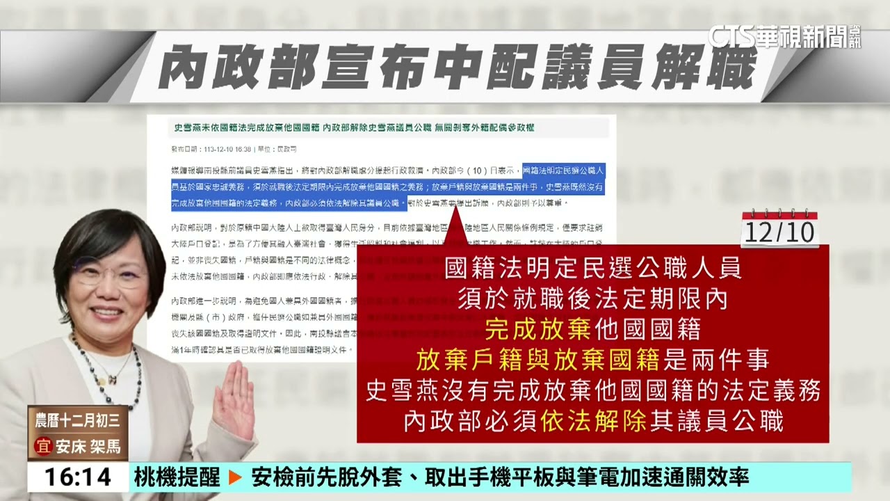 ⟪20250103共同聲明稿⟫ 史雪燕隱瞞雙重國籍 依法撤職天經地義