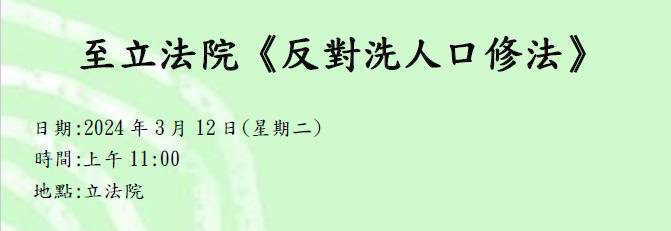 0312 「反對洗人口修法—中國配偶入籍條件應比照其他國家人士辦理」記者會報名