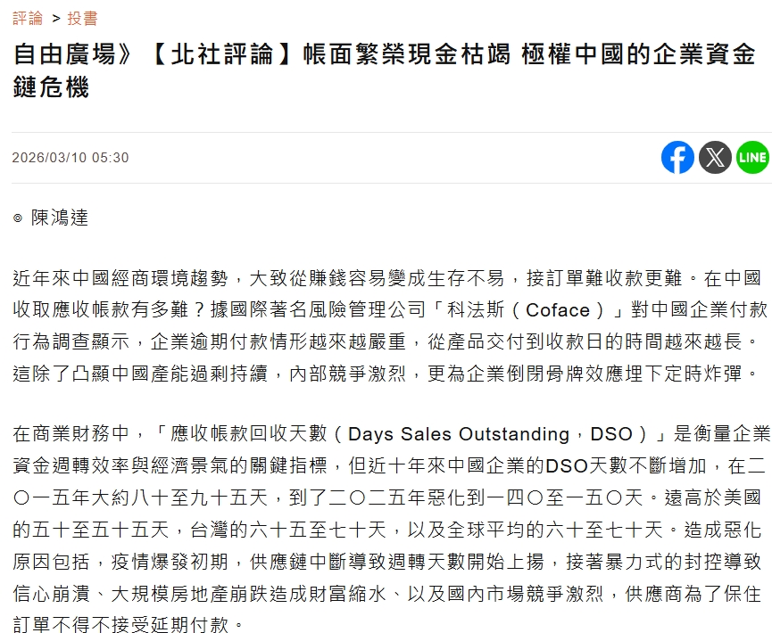 20260310-北社評論-帳面繁榮、現金枯竭:中國極權經濟體制下的企業資金鏈危機